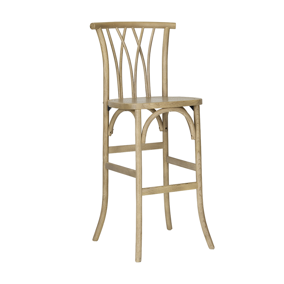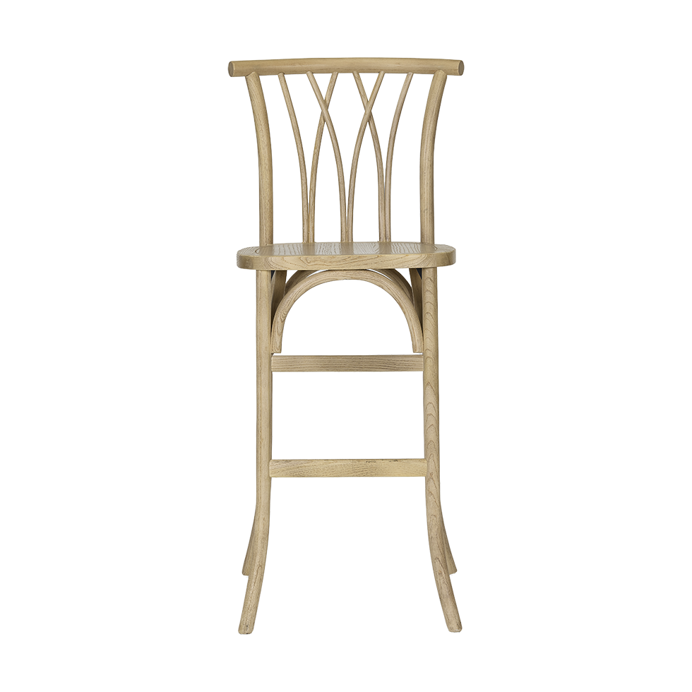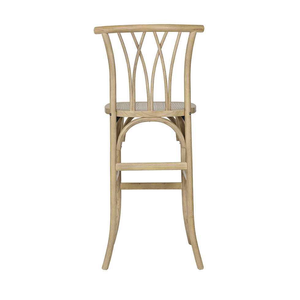 The Margaux Natural Barstool pairs a warm natural wood finish with a refined crisscross spindle back for a look that feels both relaxed and polished. Its elevated height and airy silhouette make it a perfect fit for styled bars, high-top dining, and lounge moments. Effortlessly versatile, Margaux brings organic warmth to weddings, coastal gatherings, and thoughtfully designed events.